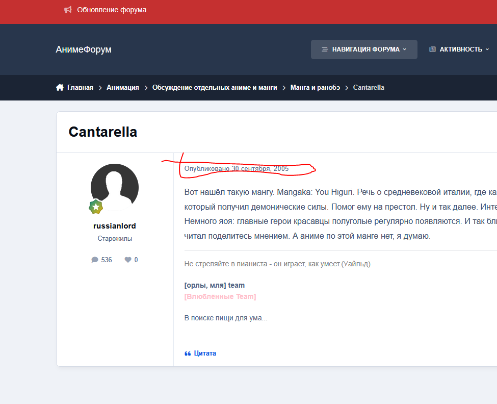 форум посвещен манги и аниме "Берсерк" держится на кучке оллдов собирающихся раз в несколкьо месяцев обгладать новый релиз манги, которуй пилит уже друг покойного автора оригенала...