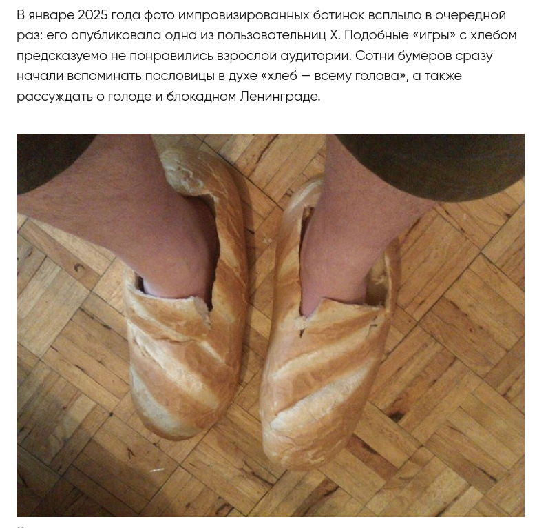 Форма: грубые ботинки высотой 18 см от подошвы до верха Материал: ТЕМНЫЙ ржаной хлеб, испеченный грубо Цвет: темно-коричневый почти черный #2C1810, местами с серым налетом #4A4238 Текстура корки: Трещины глубиной 4-7 мм, хаотичные Неровная бугристая поверхность с перепадами 5-8 мм Вкрапления зерен ржи диаметром 3 мм, торчащих из корки Матовая поверхность, без блеска Видна пористая структура мякиша в местах сколов - поры диаметром 2-4 мм Подошва: толщина 3 см, плоская, куски хлеба крошатся по краям Носок ботинка: закругленный, ширина 11 см Шнуровка: грубая бечевка цвета #8B7355, продета через 6 отверстий диаметром 8 мм Состояние: потертые, с отвалившимися кусками корки размером 2-3 см у пятки, крошки на ступенях крыльца СЫН (справа в кадре):