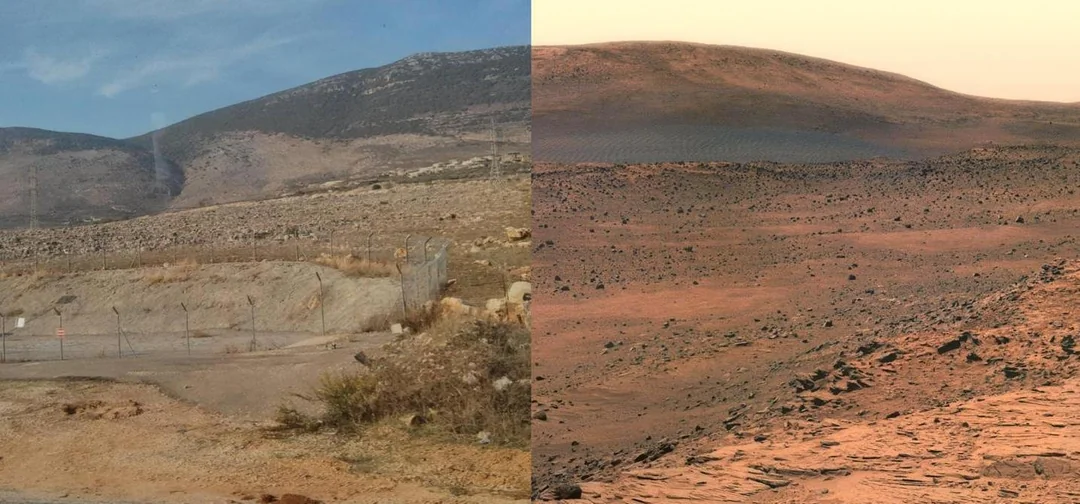 Там скорее склеенные фото. Обрати внимание - тени от световых мечей в одну сторону падают и тут-же тень от марсохода падает в диаметрально противоположную сторону.