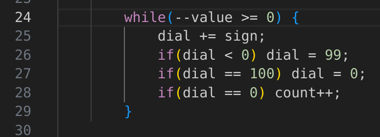 Первое задание нетрудное кроме зумеров. Есть типа сейф с крутилочкой на 100 делений. Есть список вращений влево или вправо. Надо посчитать, сколько раз остановились на 0.