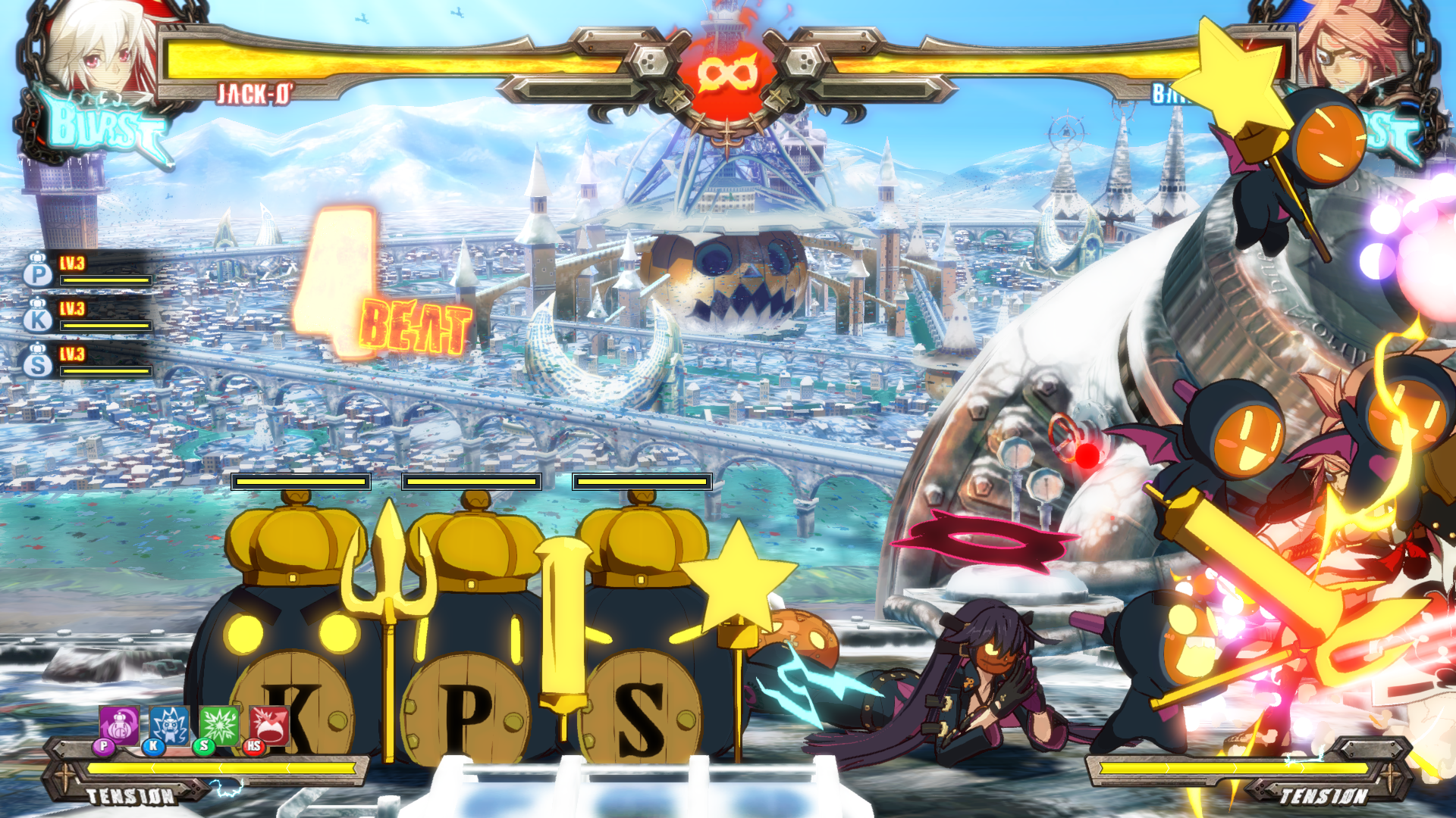 Да, у Джак-О подсосы тока закрывают пробелы в комбо. Но при этом, что забавно, они же могут и сбивать некоторые мувы самой же Джак-О, как тот удар, выглядящий как комманд граб.