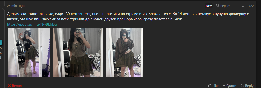 прикиньте тому тому как накачали спермаком на нг стоять не могла сучка а какой то симп тредовский сидит тут наяривает на нее мечтает бля тома тома няшечка девственная вот бы обнять ее ой надо донат ей кинуть 100 рублей что мама на чипсы дала