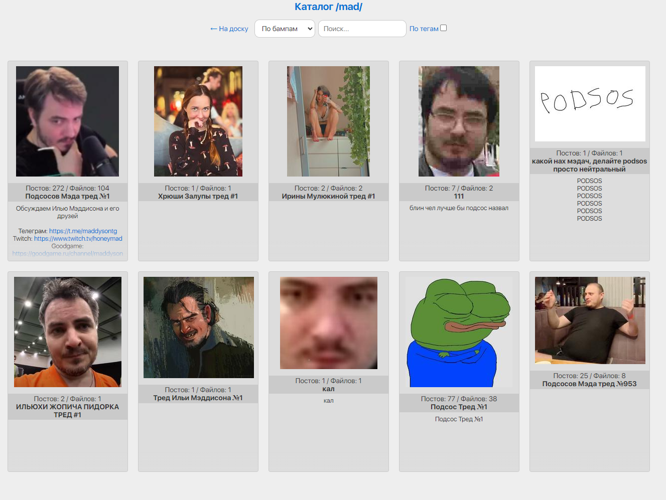 нужен или /pods/ или /podsos/ /mad/ это кал объективно, кто сейчас рад завтра сам отсюда свалит если тут не будет симпов и прочих их раздражителей