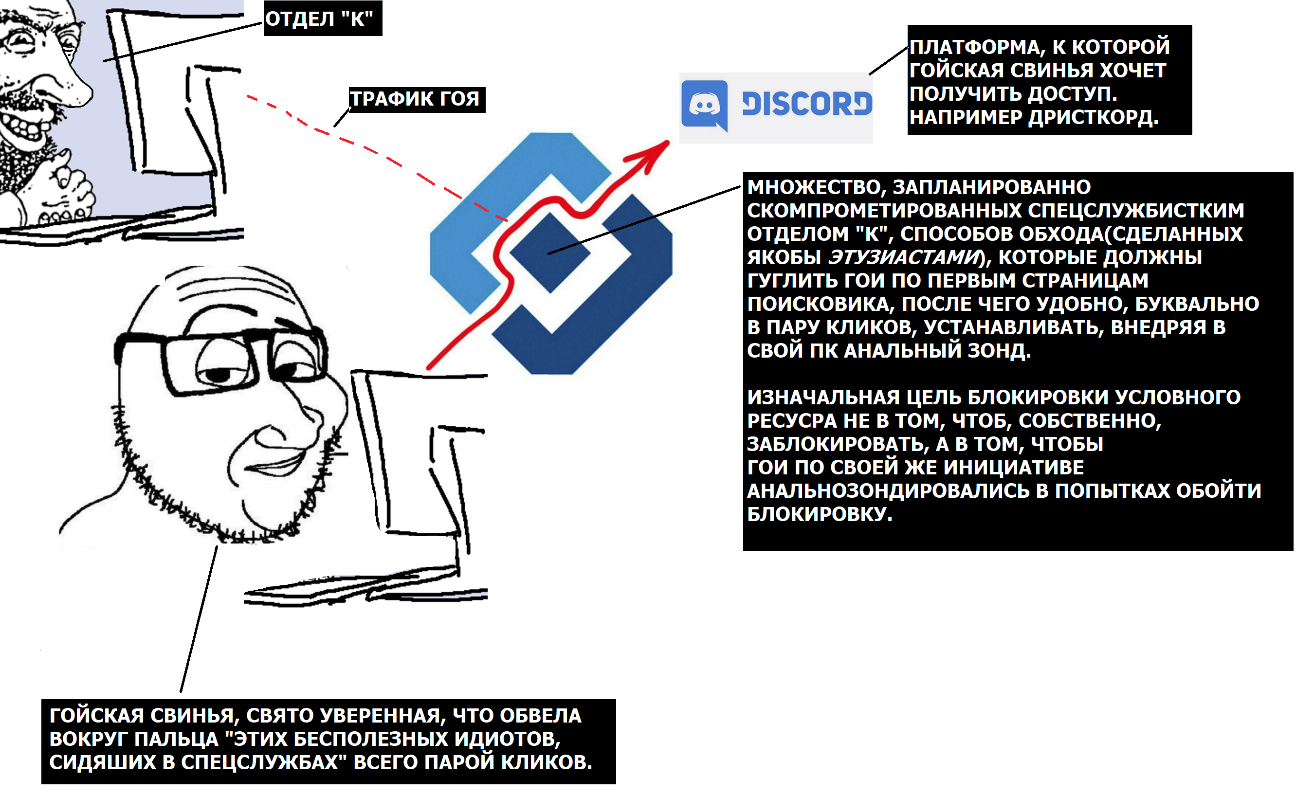 Как боты заставляют принять нас кибергулаг, пример - пользователь недоволен что корпорации собирают и торгуют вашими данными 3 лицам, относится к кибербезопасности халатно отдавая хакерам базы, ботяра начинает говорить везде слежка и камеры без этого никуда, а если хотите тру анонимности переедь в тайгу, тоесть ставит дискурс в тупик обвиняя при этом жертву, закрепляя мысль что кибергулаг настал а ты ничего не решаешь,