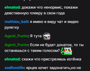 >>519935 решила стать нормисом, но у неё это не получится, она сейчас буквально рассказывала про собак каких-то конкурс собак показывала и говорила слово "сиськи" несколько раз это уже не нормисное поведение, она пытается, но всё равно не выйдет