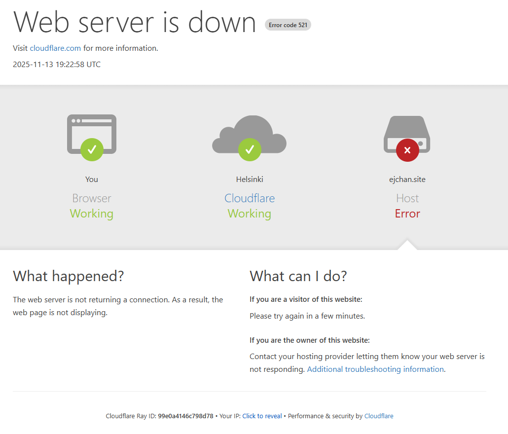 >>1169538 Упал, похоже. Сам домен вроде работает. Вообще, инсайдерская инфа, последние пару недель в европейской части интернета довольно много технических работ, часть из которых вызывают всякие обрывы, потери и аварии у юзеров без резерва.