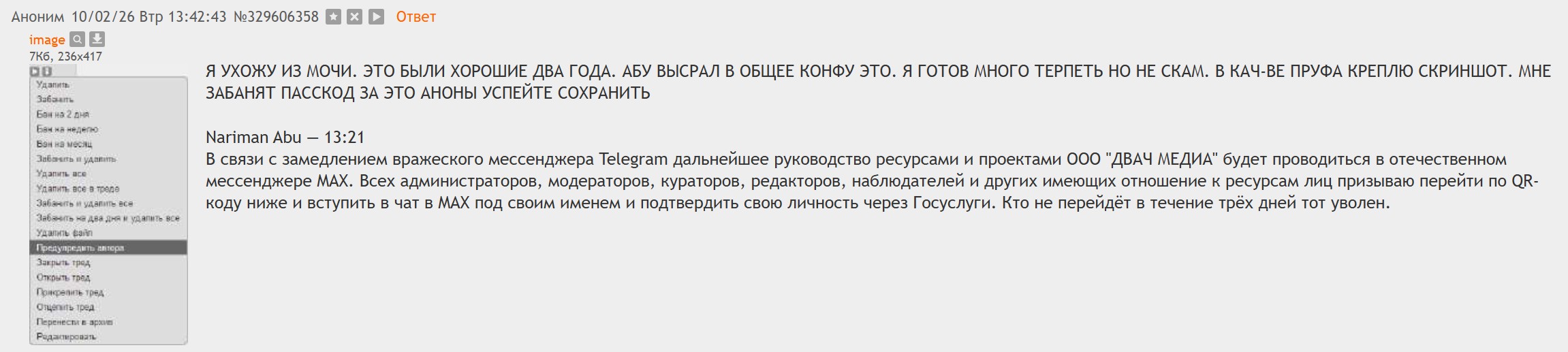 >обсуждение этой и других имиджборд >снесли пост про ендчан >точно же как на ментаче ВСЕ С ВАМИ ЯСНО