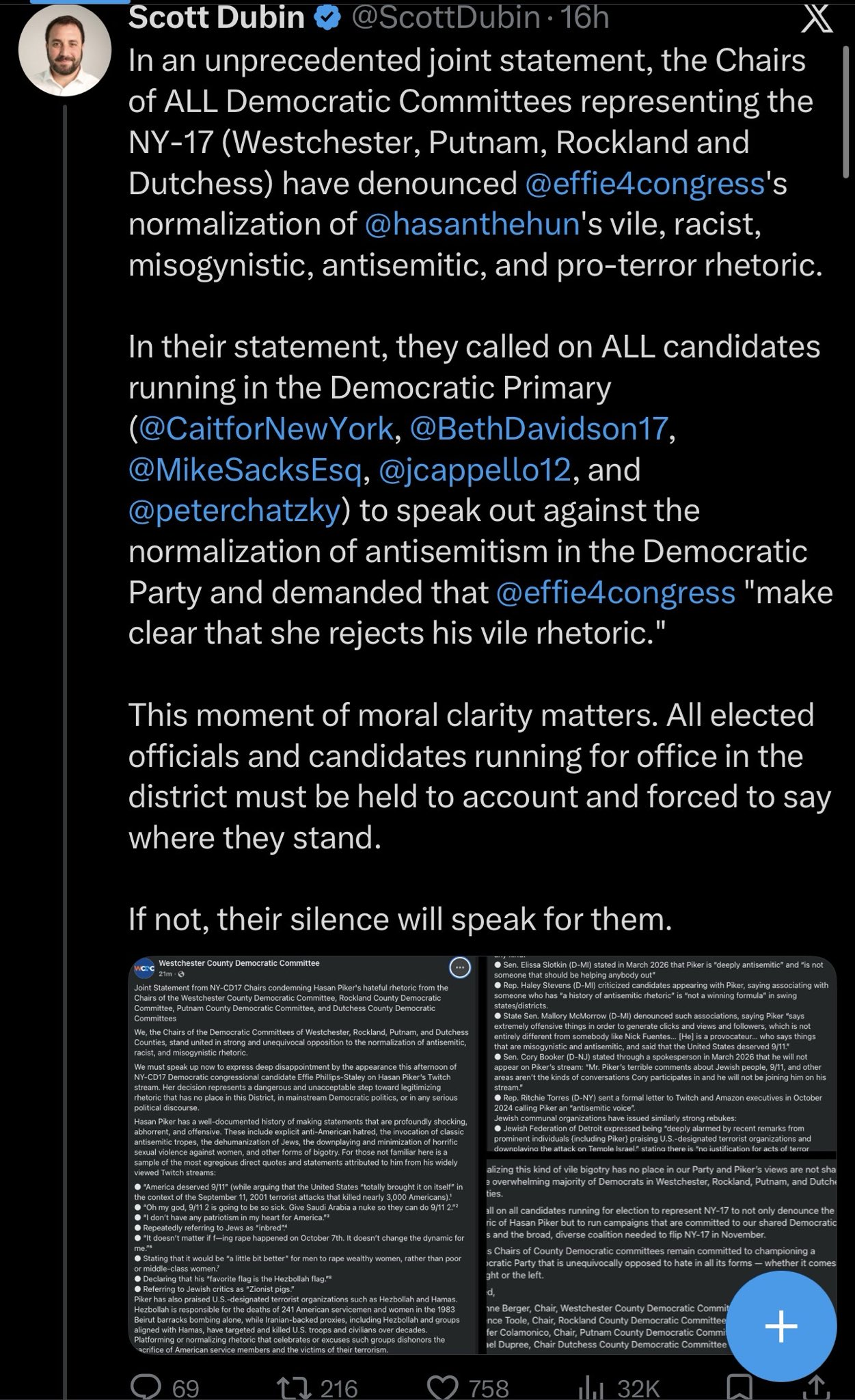 Стримера Twitch Хасана Пайкера после его поездки с левачками на Кубу, где левачки убили кубинцев в больнице забрав у них электричество для своего пятизвёздочного отеля, где Хасан тусил и заставлял танцевать нищих кубинских детей за пончик, пидорнули не только с выступлений ведущие университеты США, но и демократические петухи пидорнули из своих коммунистических кругов. Председатели комитетов Демократической партии от 17-го избирательного округа Нью-Йорка выступили с совместным заявлением, в котором осудили Эффи Филлипс-Стейли за «нормализацию» риторики Хасана Пайкера.