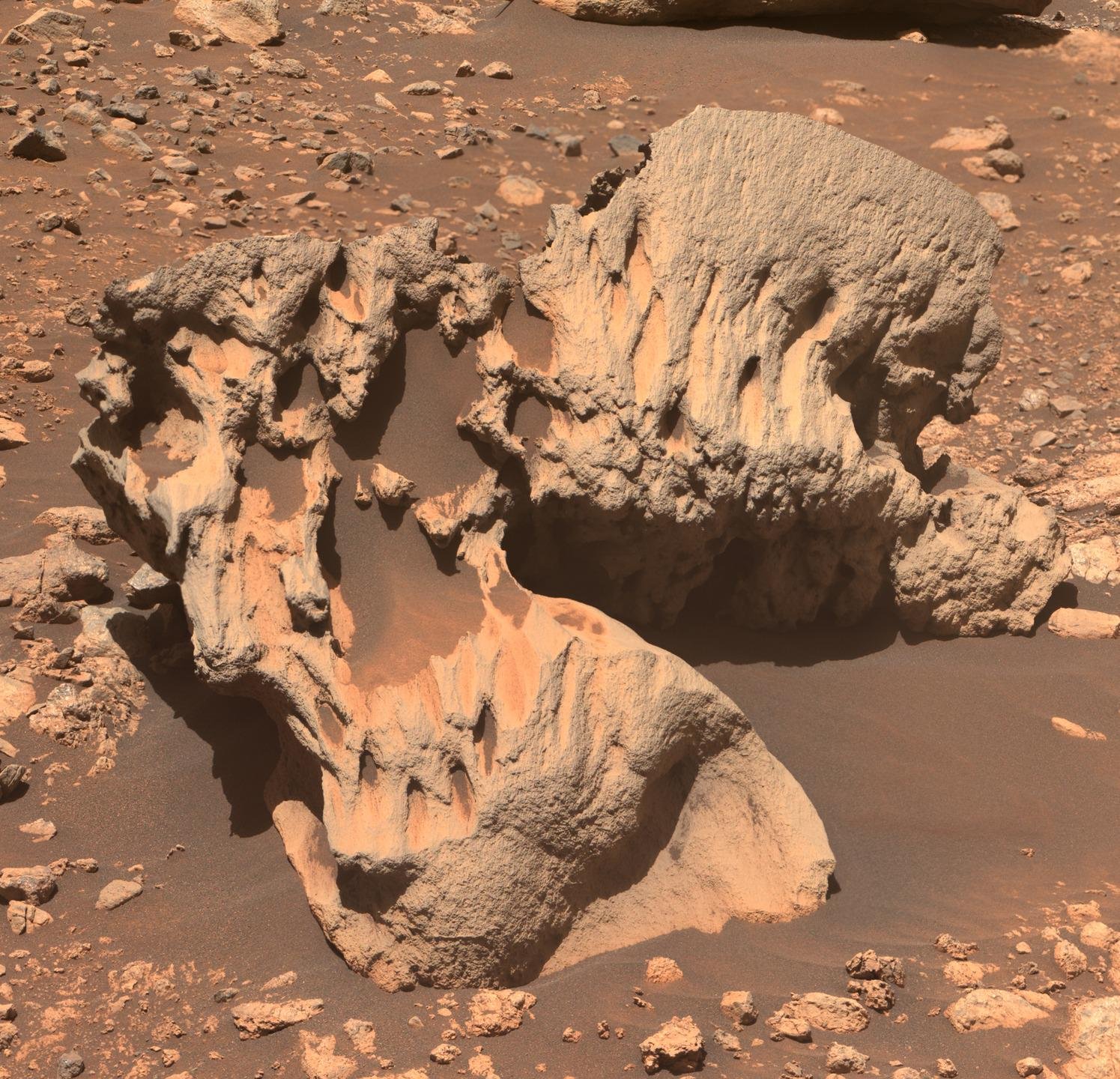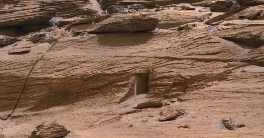 Там скорее склеенные фото. Обрати внимание - тени от световых мечей в одну сторону падают и тут-же тень от марсохода падает в диаметрально противоположную сторону.