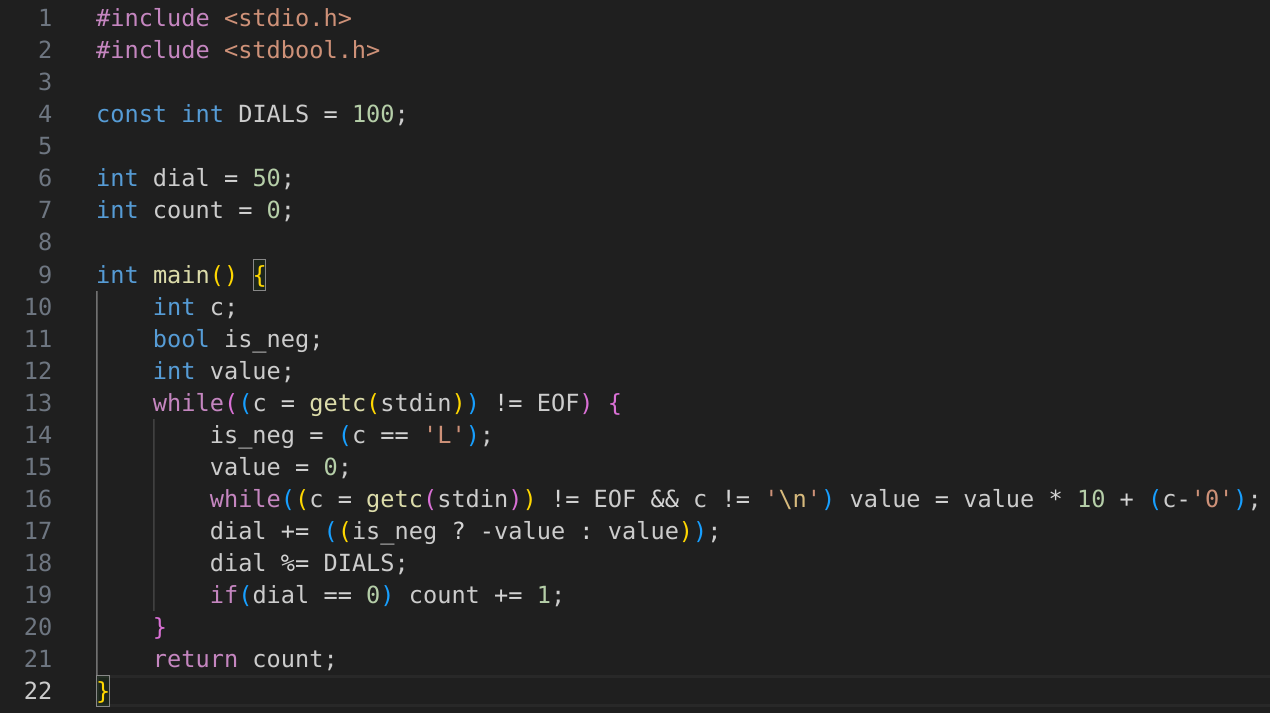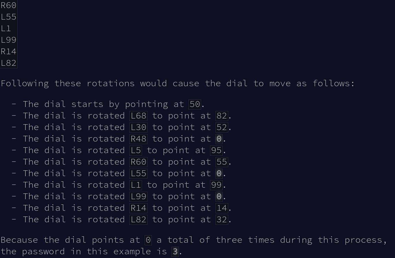 Первое задание нетрудное кроме зумеров. Есть типа сейф с крутилочкой на 100 делений. Есть список вращений влево или вправо. Надо посчитать, сколько раз остановились на 0.