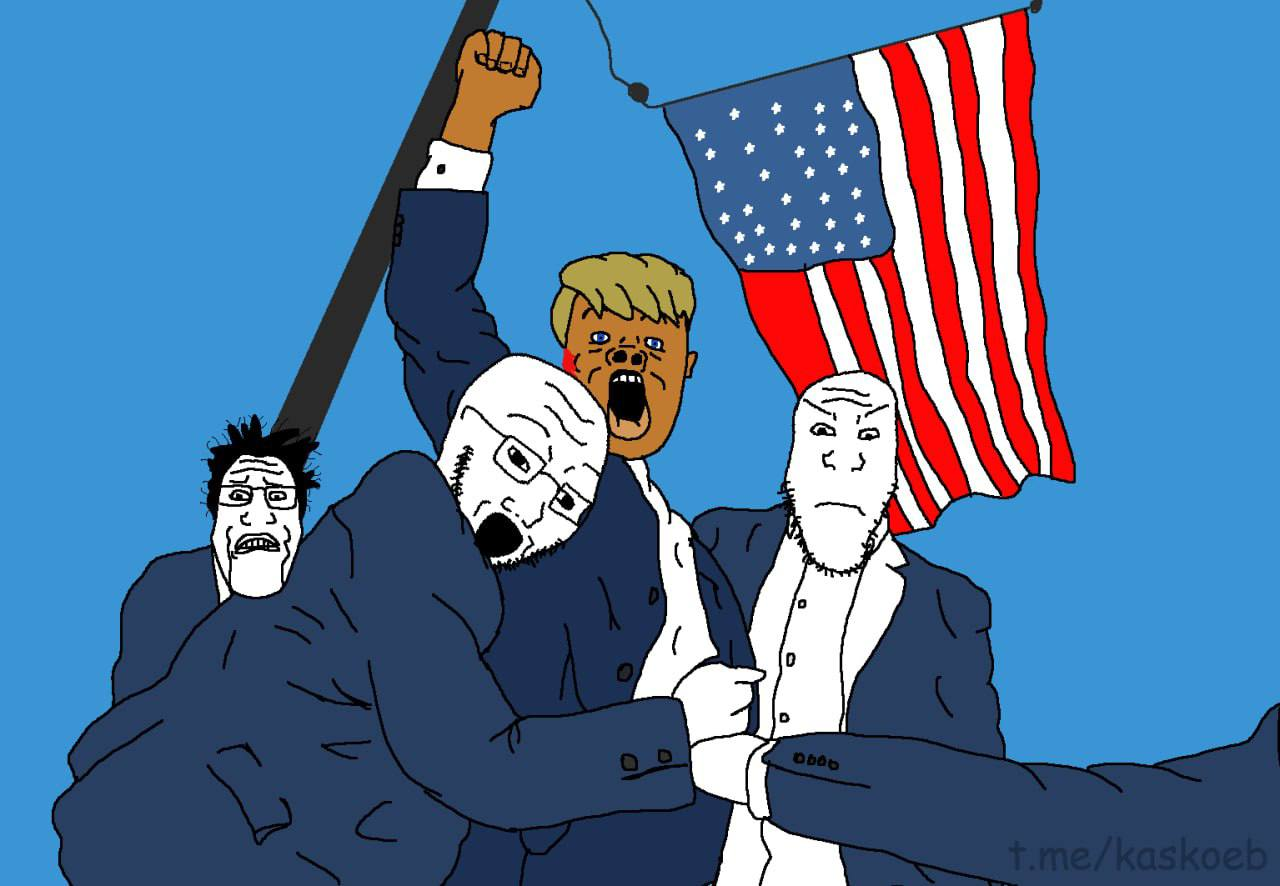 Какой наивняк. Люди всё ещё думают, что президент США это не просто говорящая голова и декоративный вафлоид типа монарха Британии или какой-нибудь обоссаной Норвегии, а действительно что-то там решает и влияет на политику. Посади в кресло президента США хоть кота, хоть ежа, хоть Инстасамку, и вообще ничего не изменится. Вечно срущий под себя и путающий даже свои полужопия олигофрен Байден это прекрасно доказал. Ибо страной управляет не конкретный человек, которого "выбирают" наивные пиндорахи, а никем не избираемые конгрессмены, сенаторы и владельцы гигакорпораций, которые сидят в своих креслах литералли поколениями.