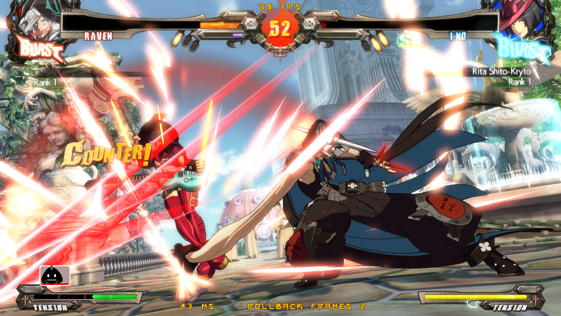 У Чмороны вместо эйрдэша как бы планирование вниз. Он быстро снижается и летит близко к земле, при этом имея возможность атаковать и скорее всего эти атаки коннектятся в наземные потом. У этого явно есть и минус - из корнера не выпрыгнешь. Ещё у него длиннющие нормалы и довольно быстрые проджектайлы-иголки, плюс есть медленный антиэйр орб. Ещё у него есть специвальный ресурс, который по чуть-чуть капает с некоторых ударов (непонятно как его им набирать) и генерится быстрее когда входишь в специальную стойку, в которой просто стоишь. Если тебя в неё бьют, то ресурс генерится ещё быстрее плюс ты имеешь шанс отрегенить полученный в стойку урон то ли нанося дамаг быстро после этого, то ли просто его не получая. Я точно не уверен. Чего ресурс делает я не уверен, помимо того, что он увеличивает явно урон и анимации ревёрсал ДД. Ну и в целом Чморона такой фриковатый около-мазохистский персонаж похоже.