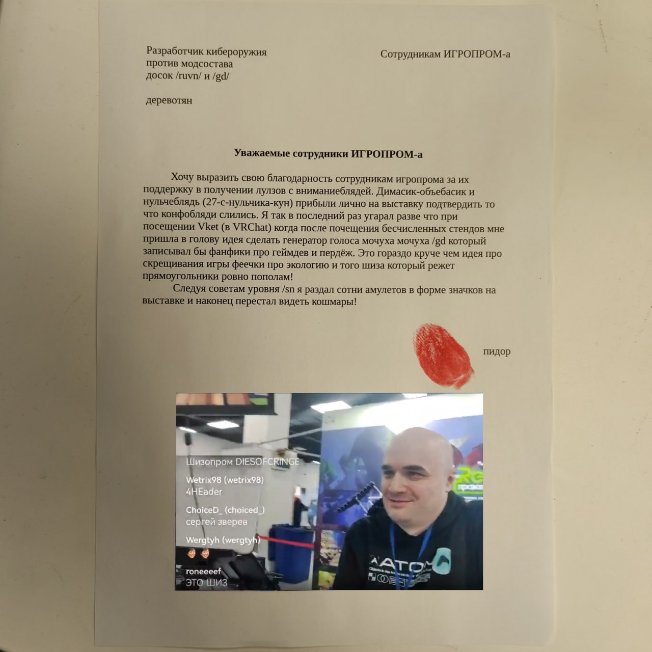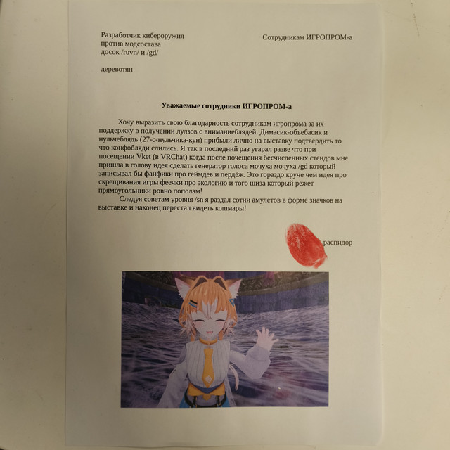 Он просто ебанутый хуесос которого поставили /gd модерировать ренпаепетушки после того как их крайне жестко зачмырили на их же конкурсах визуальных новелл