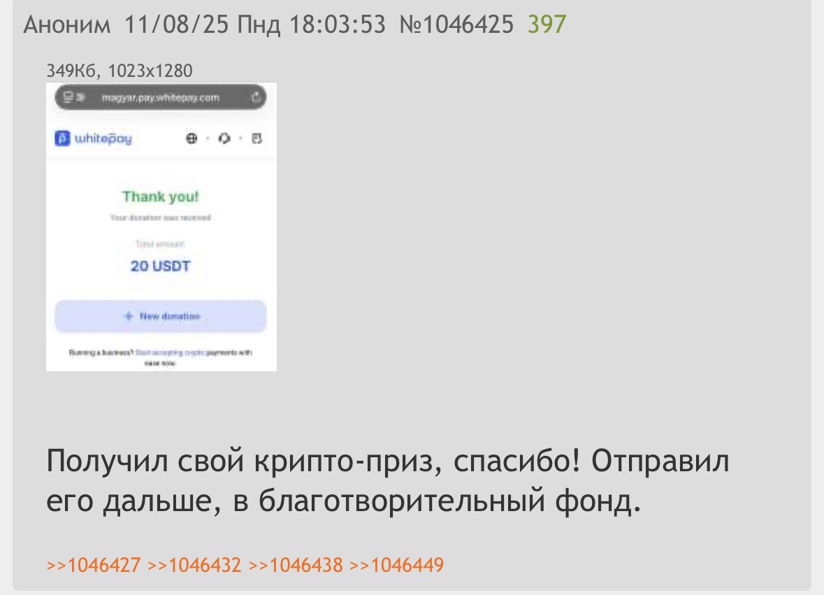 2. Отправляя пожертвования в криптовалюте, вы пополняете фонд единственной крипто-ачивки "Ведаю".