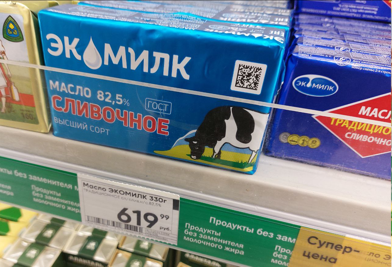 Фасовка «больших» пачек сливочного масла всё меньше. С привычных когда-то 500 граммов они уменьшались до 450, потом до 420-400, потом было 380-350, теперь вот и 330 есть.
